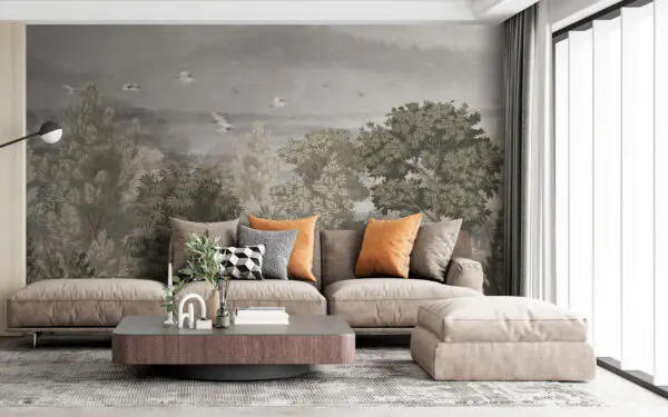 65.98 lei39.59 leiFototapet Perete gri cu copaci și păsări
