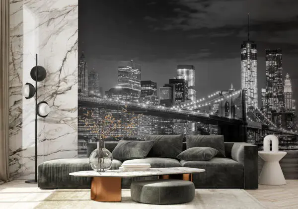 • Reducere -40% Fototapet Fototapet Pod peste apă cu orizontul orașului pe timp de noapte (SKU: u56428)