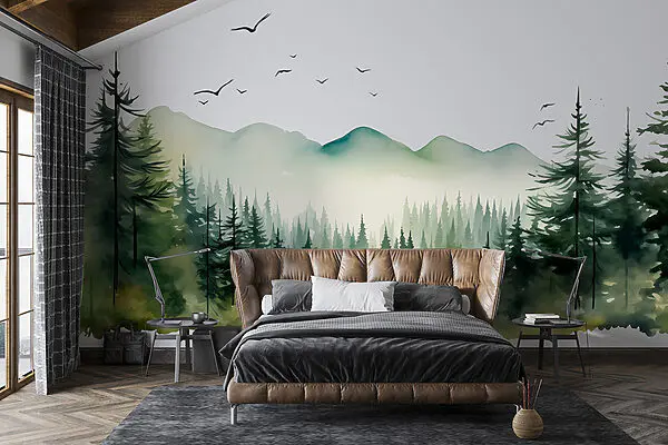 • Reducere -40% Fototapet Fototapet Acuarelă a unei păduri și munți (SKU: w02150)