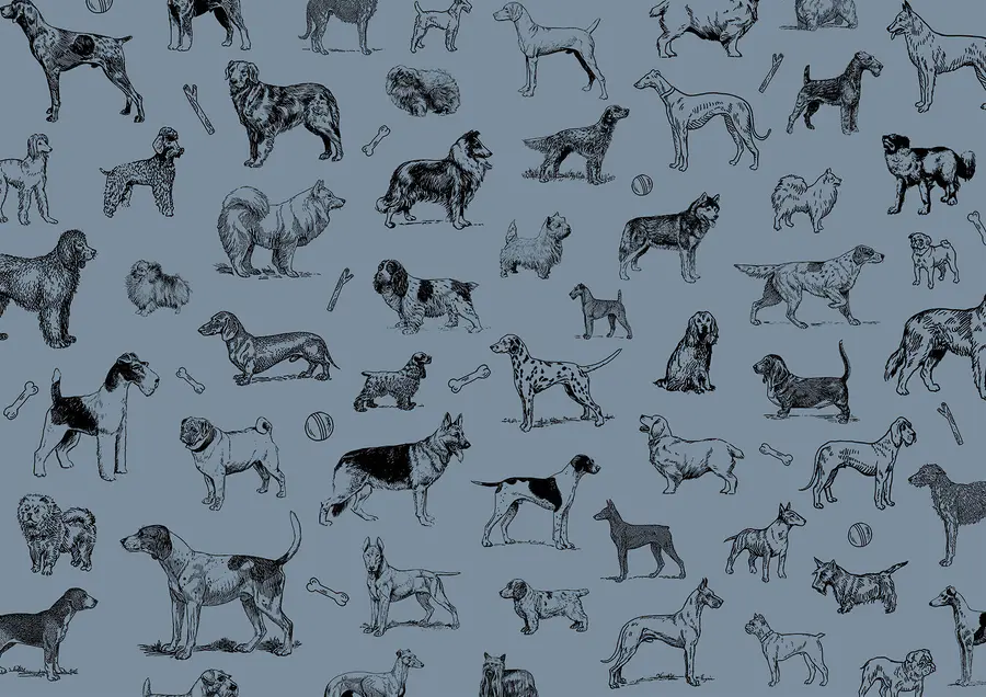 Fototapet Grup de câini pe un fundal albastru