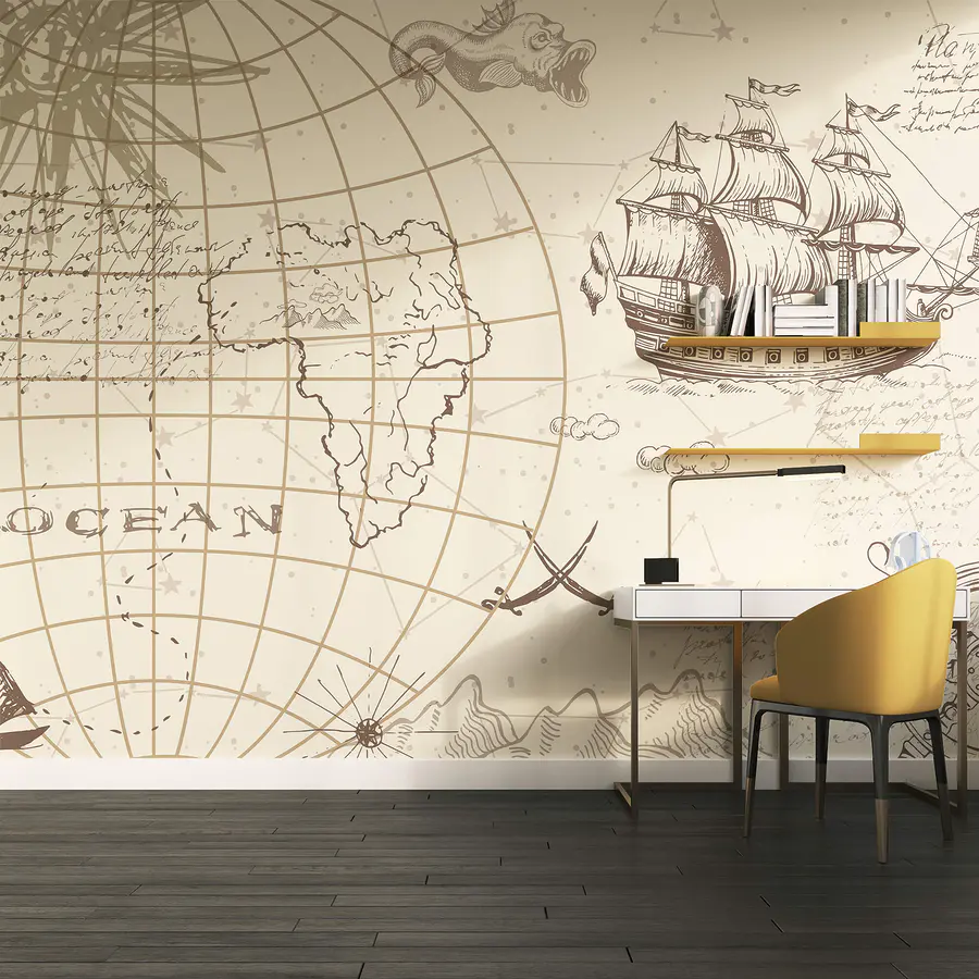 Fototapet Harta lumii și o navă