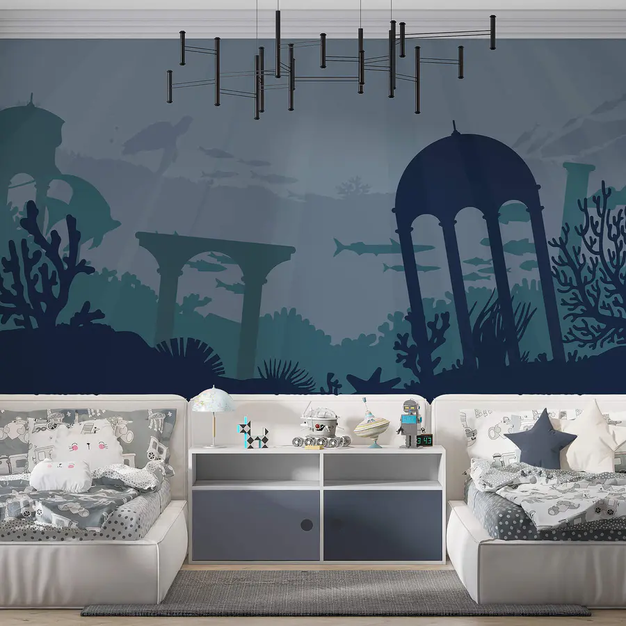 Fototapet Silueta unei clădiri și plante marine