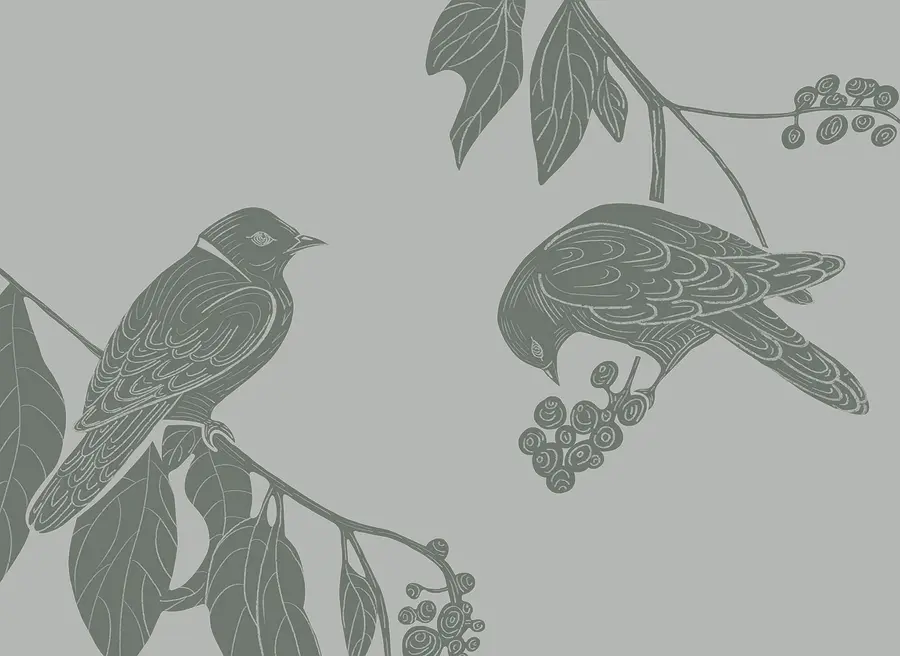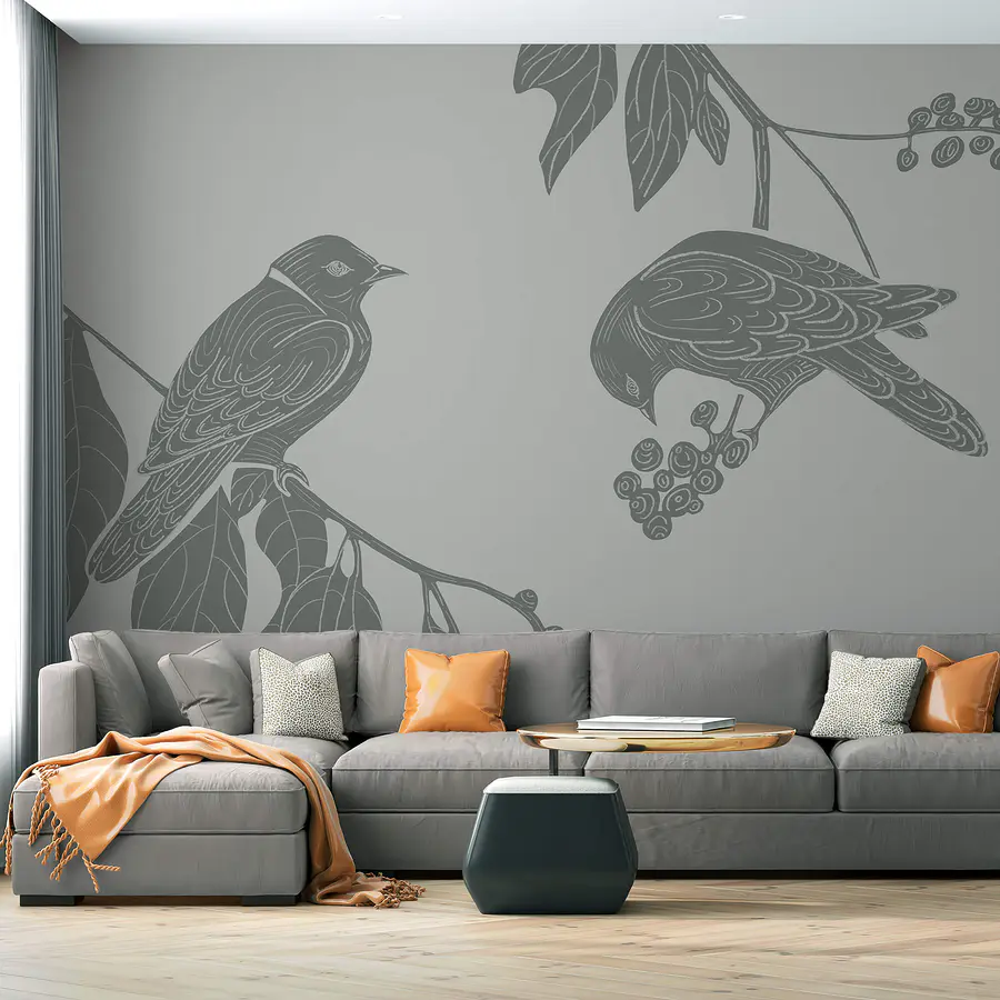 Fototapet Păsări pe o ramură cu frunze