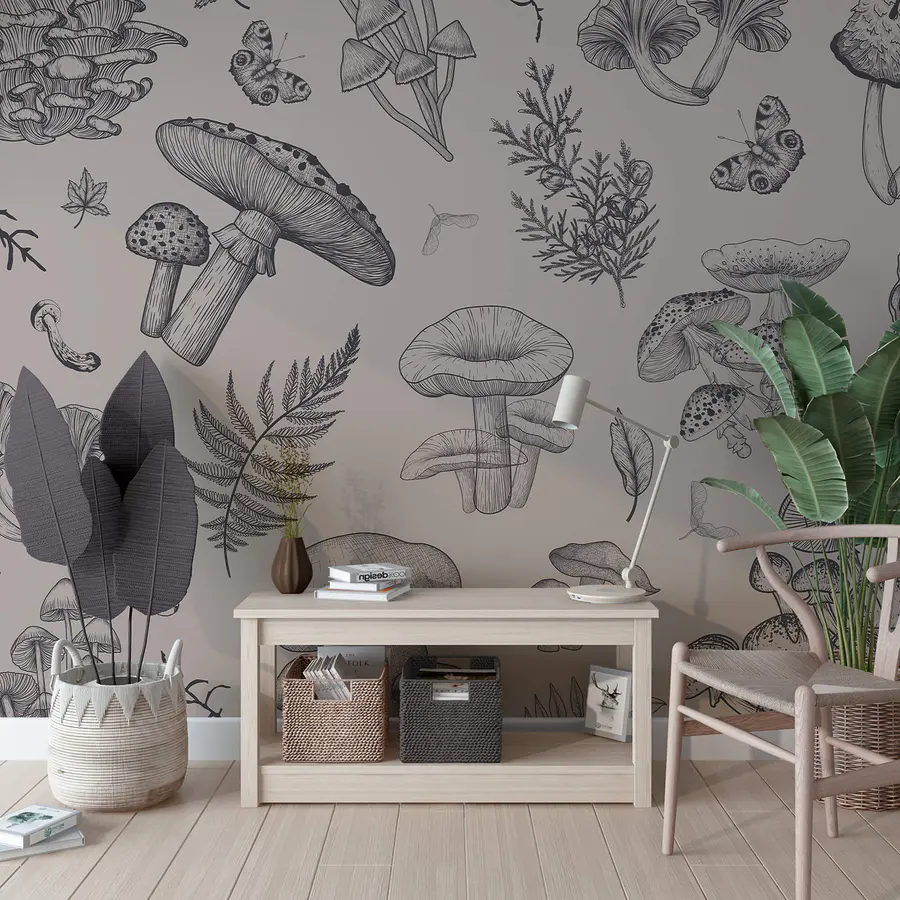 Fototapet Model de ciuperci și frunze