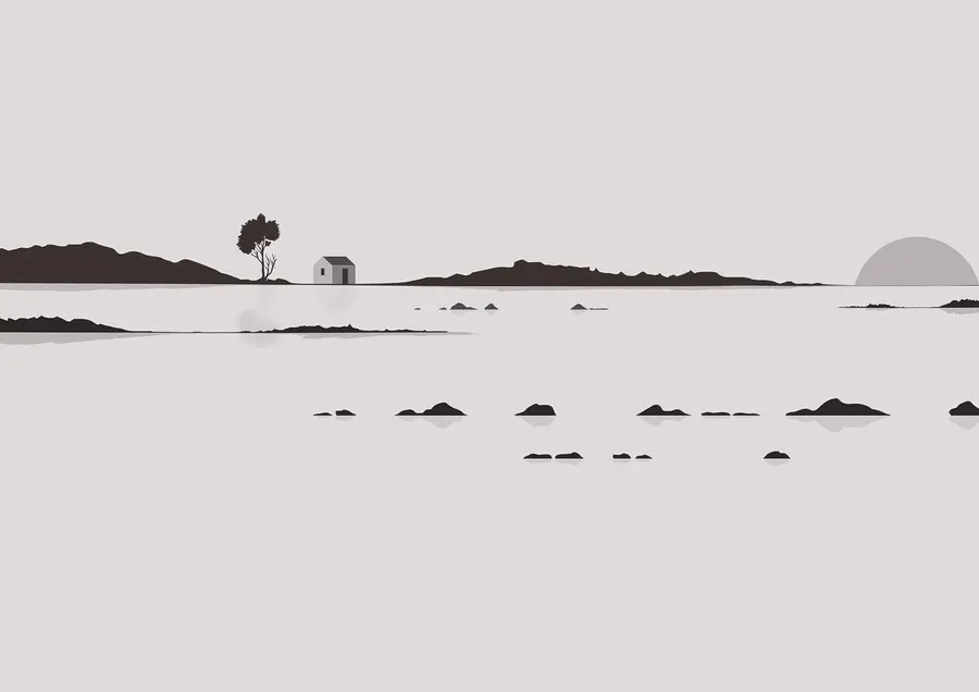 Fototapet Casă în mijlocul unui lac