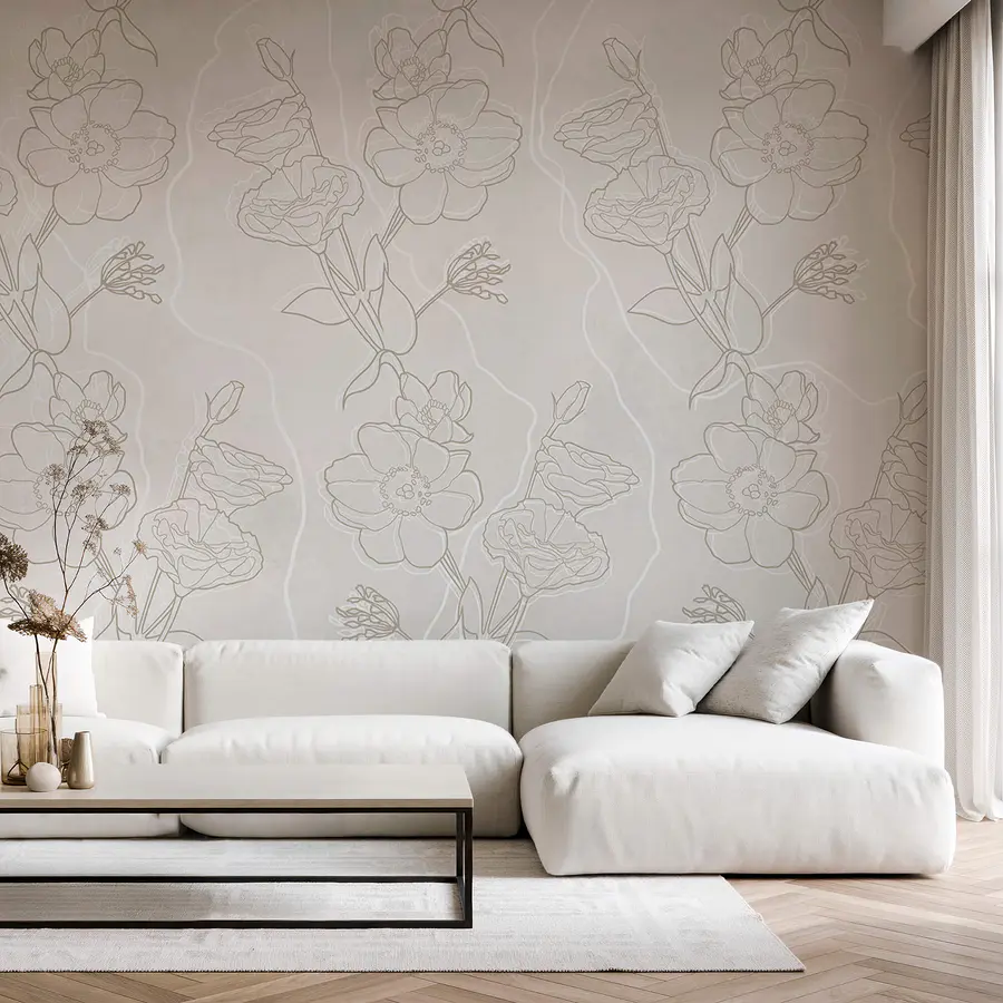 Fototapet Model floral alb și maro