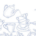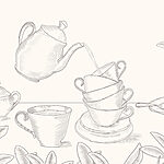 Fototapet Ceainic turnând într-o stivă de cești de ceai