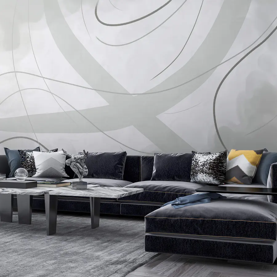 Fototapet Fundal alb și gri cu linii și curbe