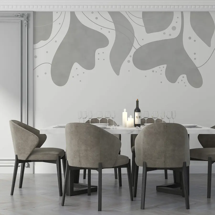 Fototapet Fundal gri și alb cu frunze