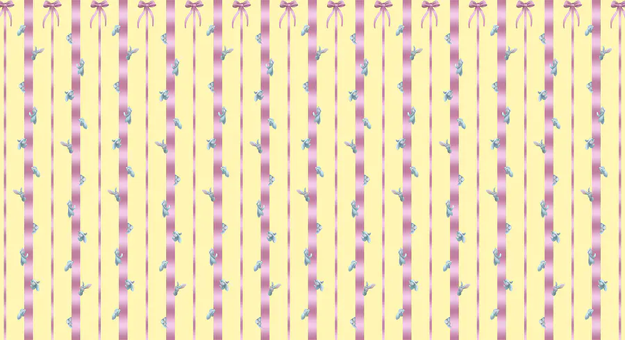 Fototapet Fundal cu dungi roz și galbene, cu păsări și funde