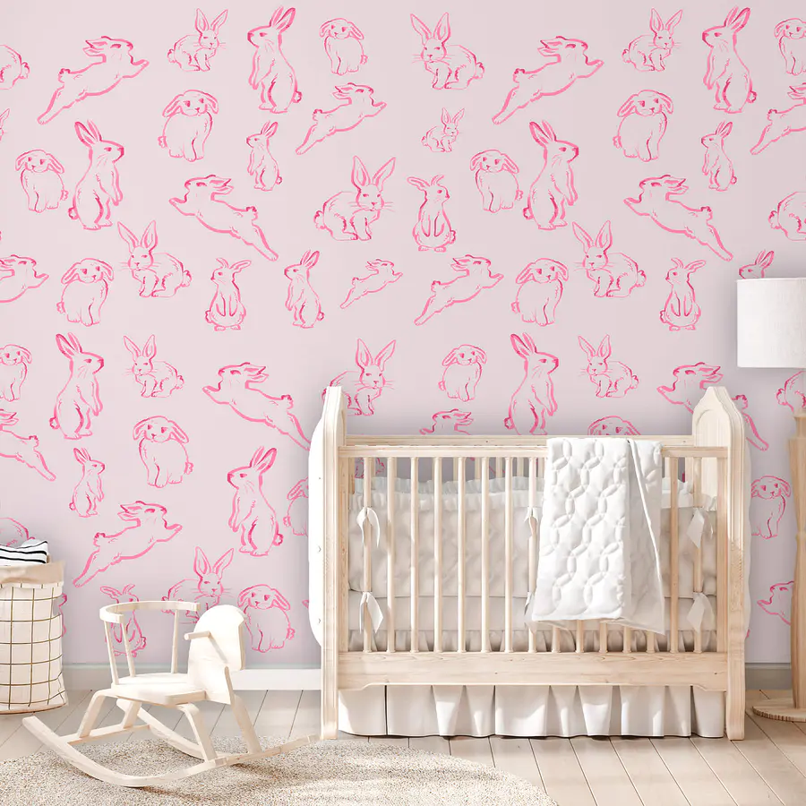 Fototapet Grup de iepuri desenați în roz
