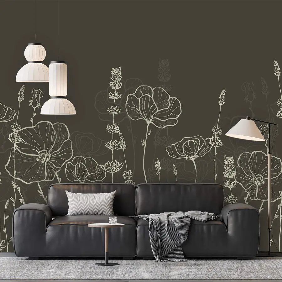 Fototapet Un șir de flori pe un fundal întunecat