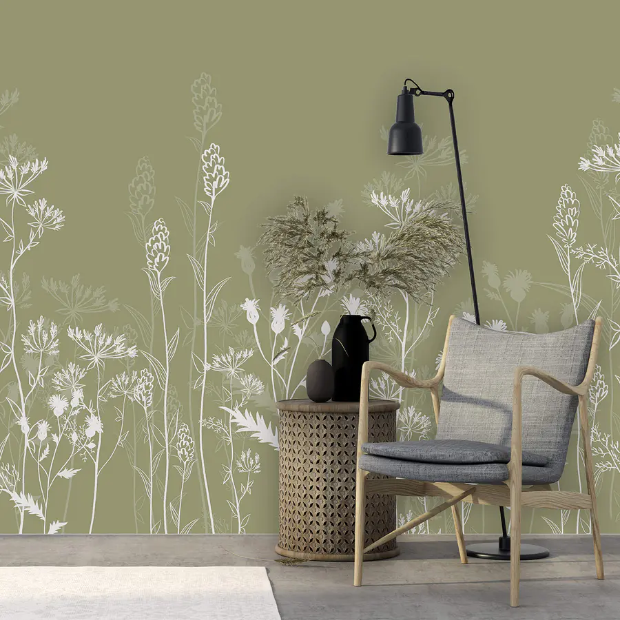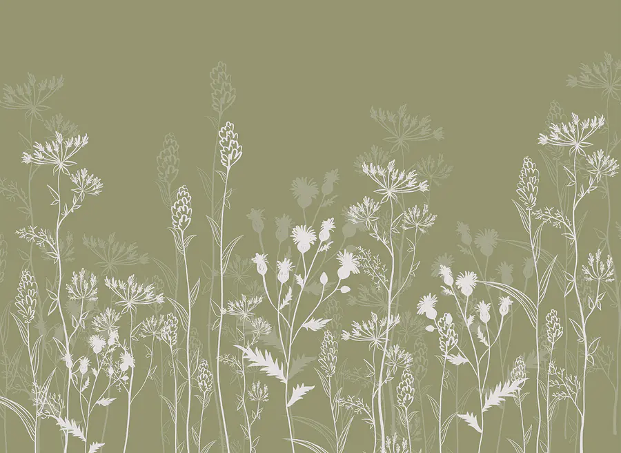 Fototapet Siluete florale delicate pe fond verde