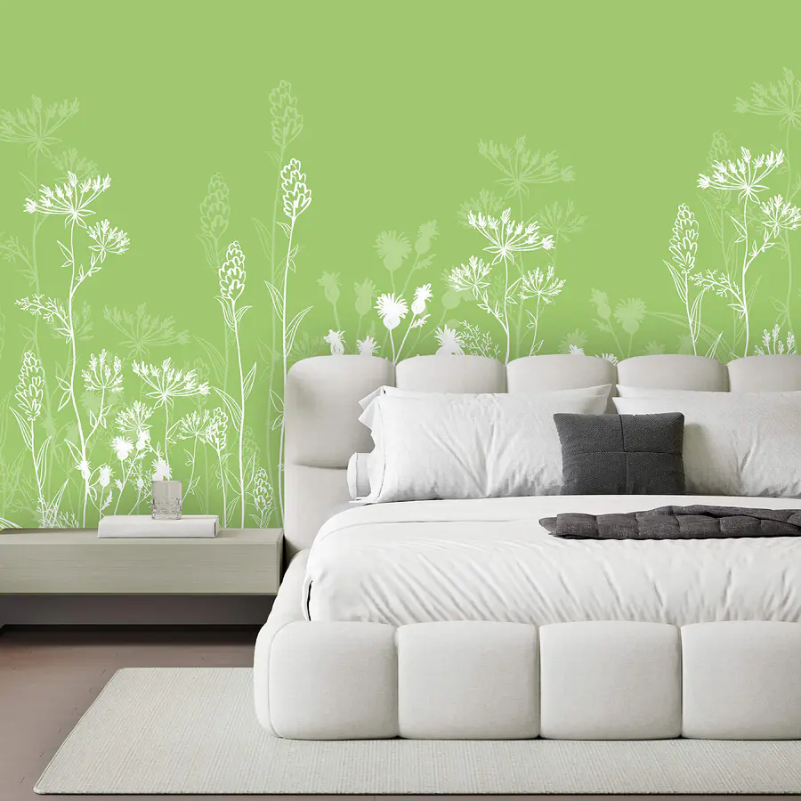 Fototapet Flori albe pe un fundal verde