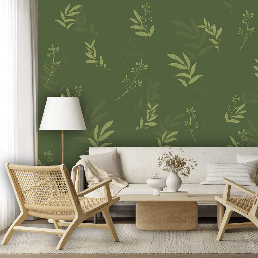 Fototapet Model de frunze pe fond verde