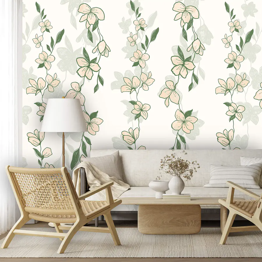 Fototapet Motiv cu flori și frunze
