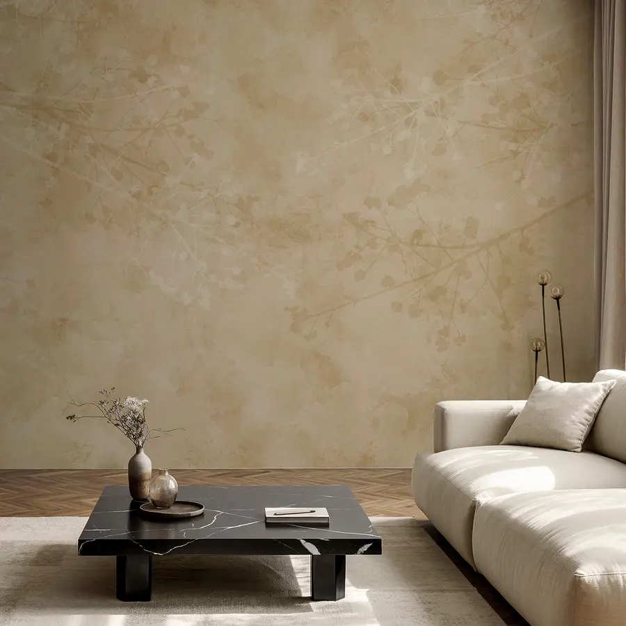 Fototapet Fundal bej cu ramuri și frunze
