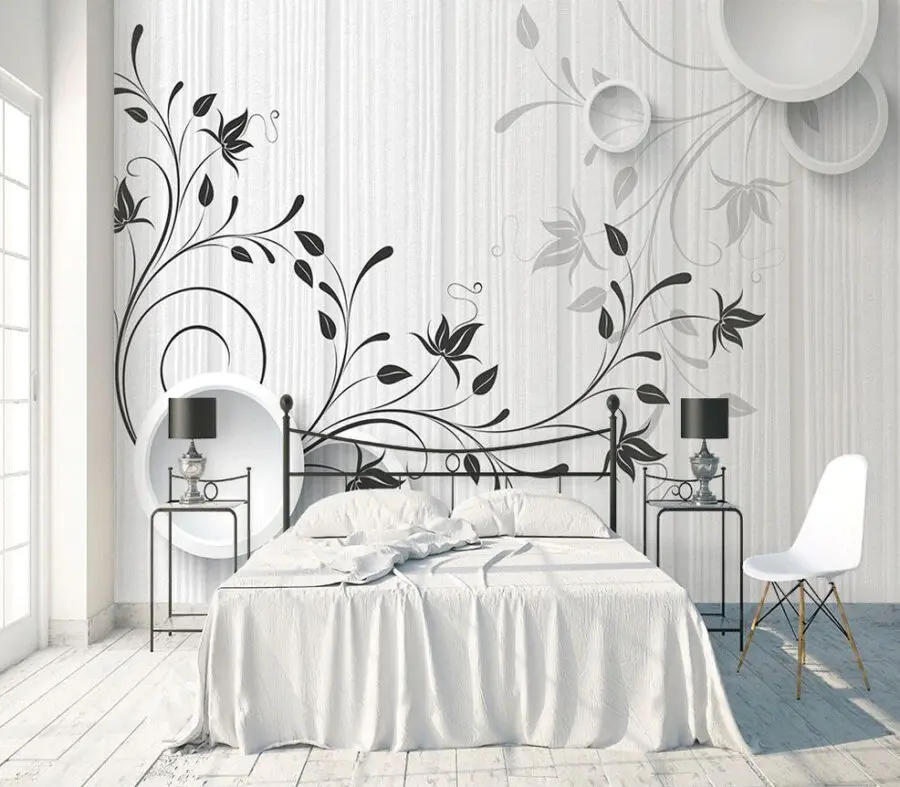 Fototapet Perete alb cu flori albe și negre