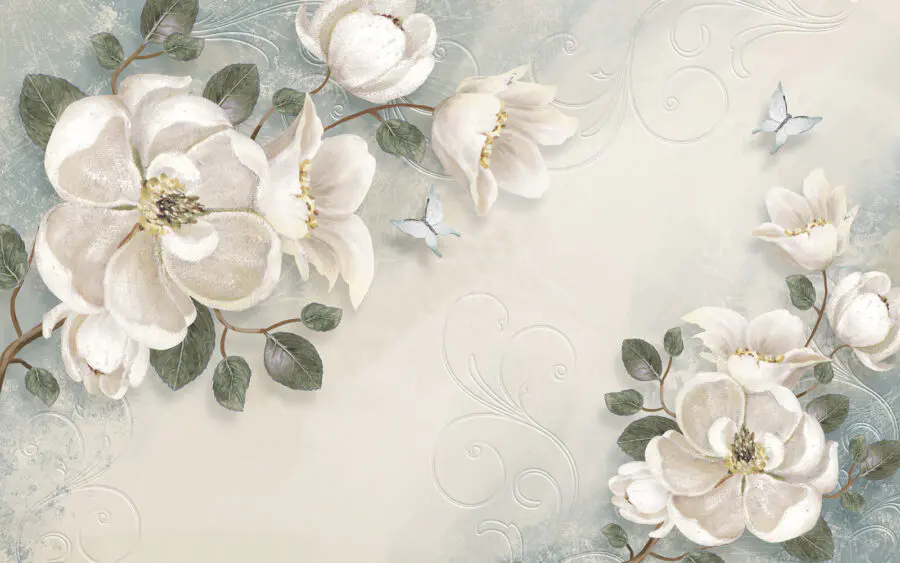 61.67 lei37.00 leiFototapet Perete alb cu flori și frunze