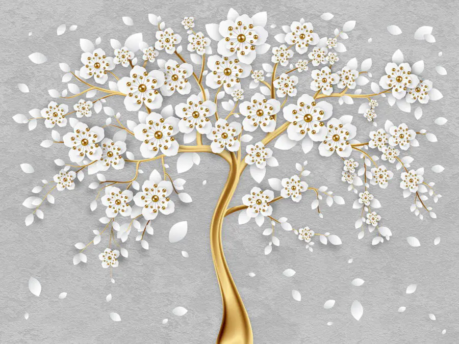 Fototapet Copac cu flori și frunze albe