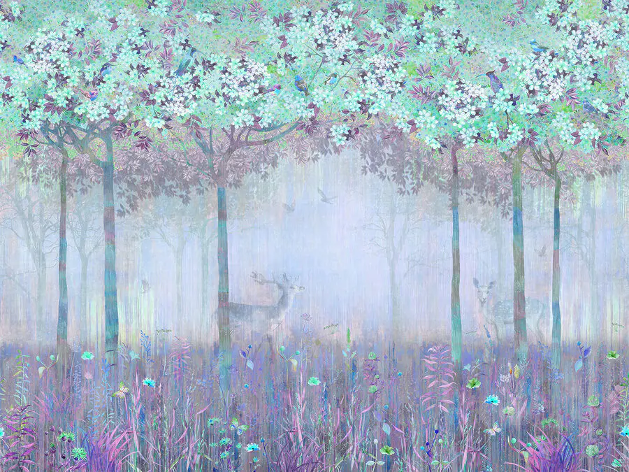 Fototapet O pictură a unei păduri cu copaci și flori