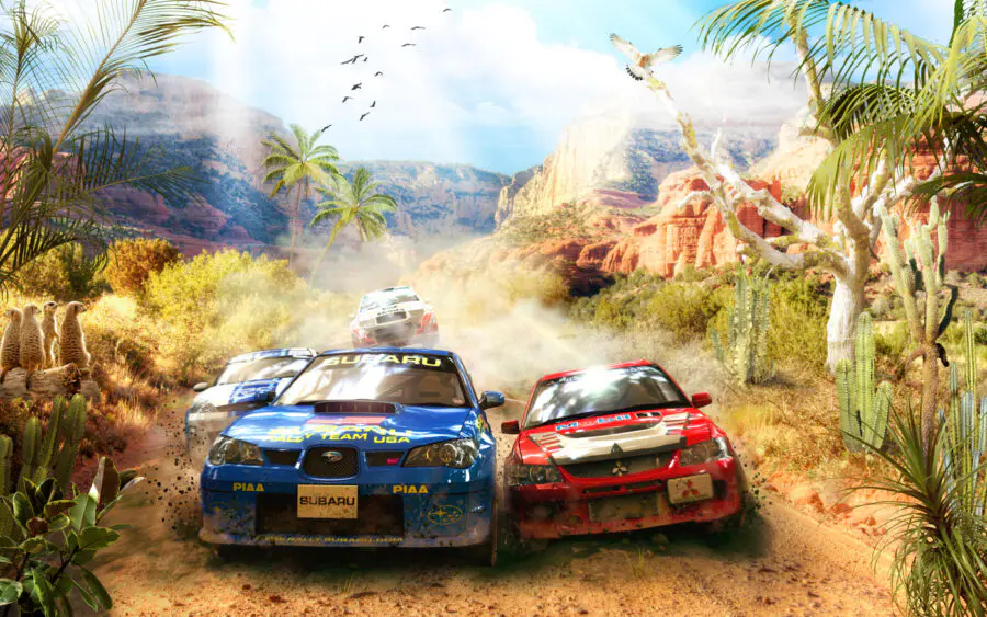 Fototapet Grup de mașini de conducere pe un drum de pământ