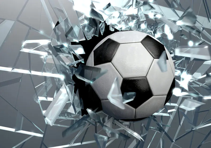 Fototapet Mingea de fotbal de rupere prin sticlă