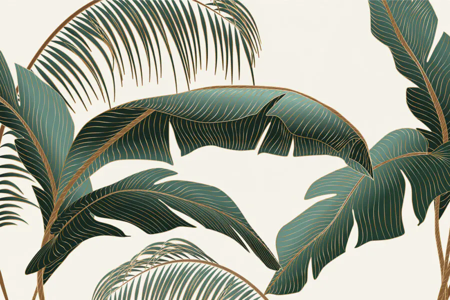Fototapet Frunze tropicale pe un fundal deschis