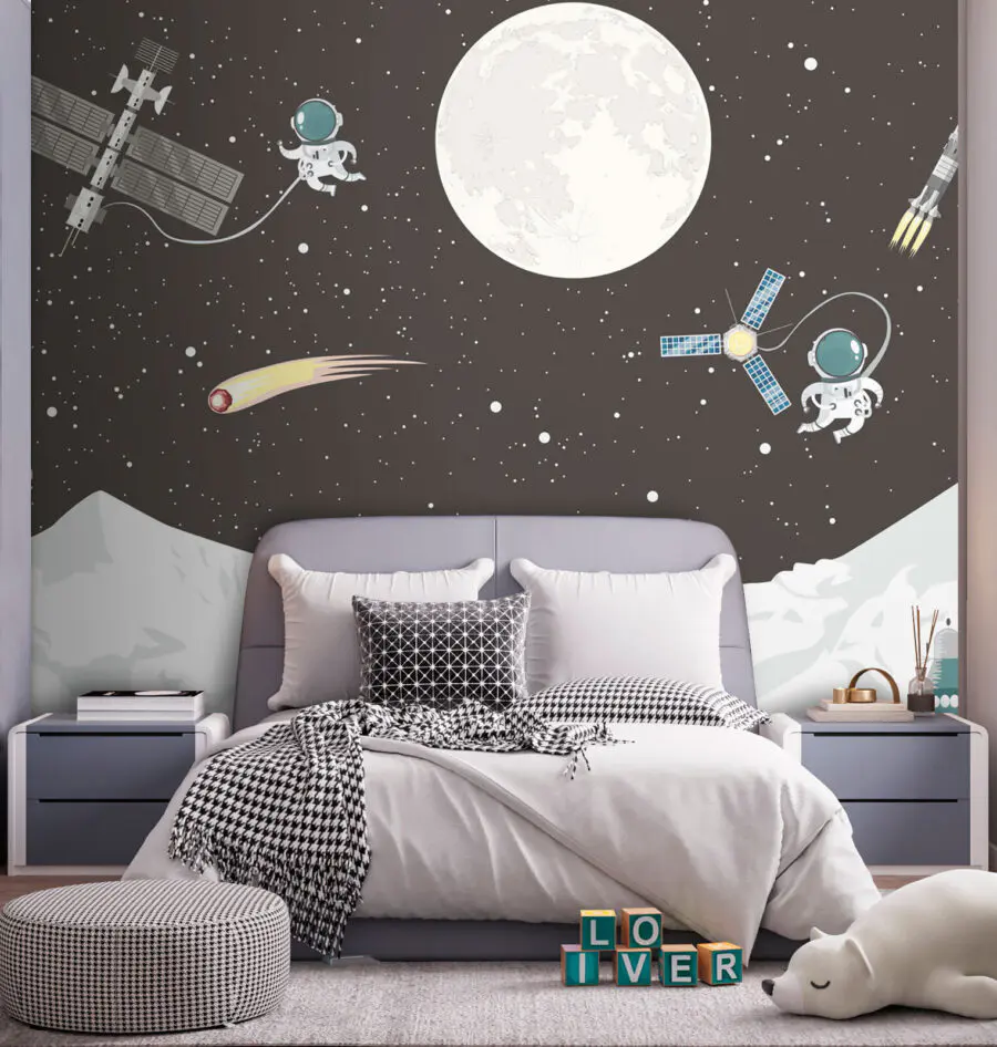 Deplasați-vă în spațiul cosmic de fiecare dată când intrați în cameră cu această pictură murală captivantă! Imaginați-vă o lună uriașă strălucind grațios și sateliți plutind în derivă prin cosmosul nesfârșit. Perfectă pentru a stârni imaginația, această pictură murală este ideală pentru camerele băieților, captând magia și misterul spațiului. Dacă ai visat vreodată să fii un astronaut care explorează lumi noi, această pictură murală te va face să te simți ca și cum ai fi la jumătatea drumului. Peisajul lunar accidentat și steaua căzătoare adaugă o notă de aventură și fantezie, făcându-l preferatul pasionaților de spațiu. Este ca și cum ai avea propria ta felie din univers chiar pe peretele tău. Pictați cerul cu vise și lăsați curiozitatea să zboare!