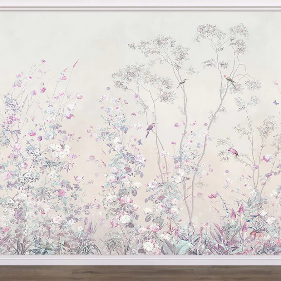 Imaginați-vă o grădină plină de flori și frunze - chiar pe peretele dumneavoastră! Acest mural de perete "Grup de flori și frunze" aduce o notă de natură în interior, transformând instantaneu orice cameră într-un paradis senin. Florile delicate și frunzișul luxuriant par să danseze împreună, sărutate de lumina soarelui și de briza șoptitoare. Este ca un instantaneu al primăverii, etern și primitor. Nu vi-l puteți imagina în sufrageria dvs., făcând ca fiecare dimineață să pară un nou început? Culorile pastelate sunt liniștitoare, ca o îmbrățișare blândă pentru ochii tăi. Iar păsărelele care zburdă prin jur adaugă o notă jucăușă, dar liniștitoare. Fiecare privire la această pictură murală este o mini evadare pe o pajiște înflorită. Așadar, dacă tânjești după un pic de natură - fără insecte și apă - această pictură murală este noul tău cel mai bun prieten!