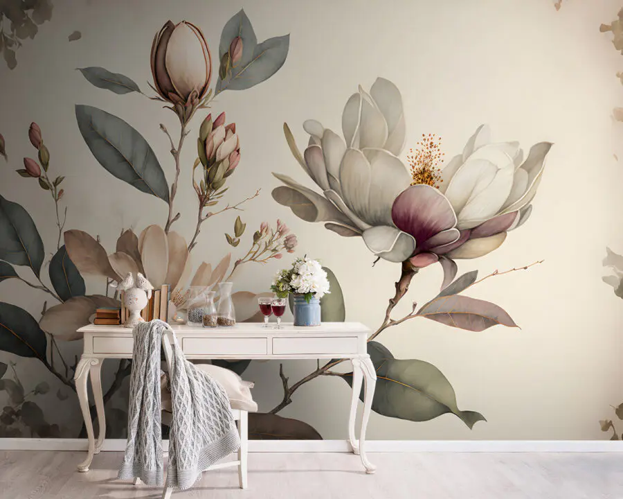 Fototapet Magnolia elegantă înflorește în nuanțe delicate