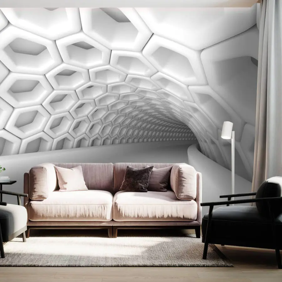 Fototapet Tunel alb cu hexagoane