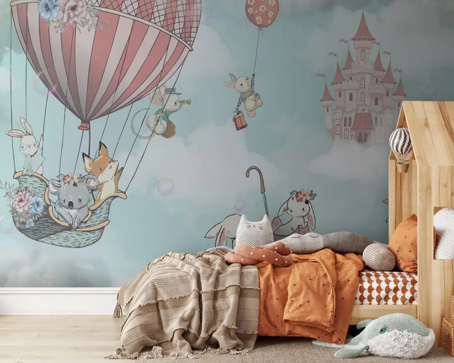 Fototapet Desen animat de animale într-un balon cu aer cald