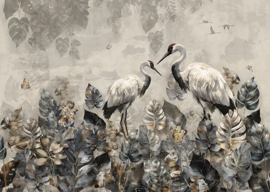 Transformați-vă spațiul cu această pictură murală uluitoare, numită în mod potrivit "Cuplu de cocori într-un câmp de frunze". Imaginați-vă că intrați într-o cameră în care aceste păsări maiestuoase vă împodobesc pereții, așezate printre frunzișuri luxuriante și detaliate - este ca și cum ați păși într-o junglă artistică și senină. Cocorii, cu posturile lor elegante, par să șoptească o poveste secretă, poate chiar o poveste de dragoste. Perfectă pentru iubitorii de natură și pentru cei care tânjesc după o felie de frumusețe în aer liber în interior, această pictură murală adaugă atât farmec, cât și rafinament. Tonurile surde, pământii, se îmbină perfect cu diferite decoruri, în timp ce detaliile complexe fac din fiecare privire un răsfăț vizual. Imaginați-vă că găzduiți o petrecere la cină; prietenii dvs. s-ar putea opri la mijlocul conversației, captivați de această scenă uimitoare. Nu este doar o pictură murală - este o experiență, care aduce căldură, liniște și o notă de exotic chiar în casa dvs. क्यों vă mulțumiți cu pereți insipizi când puteți avea ceva care este mai, ei bine, viu?