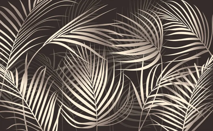 Fototapet Frunze de palmier elegante pe un fundal întunecat