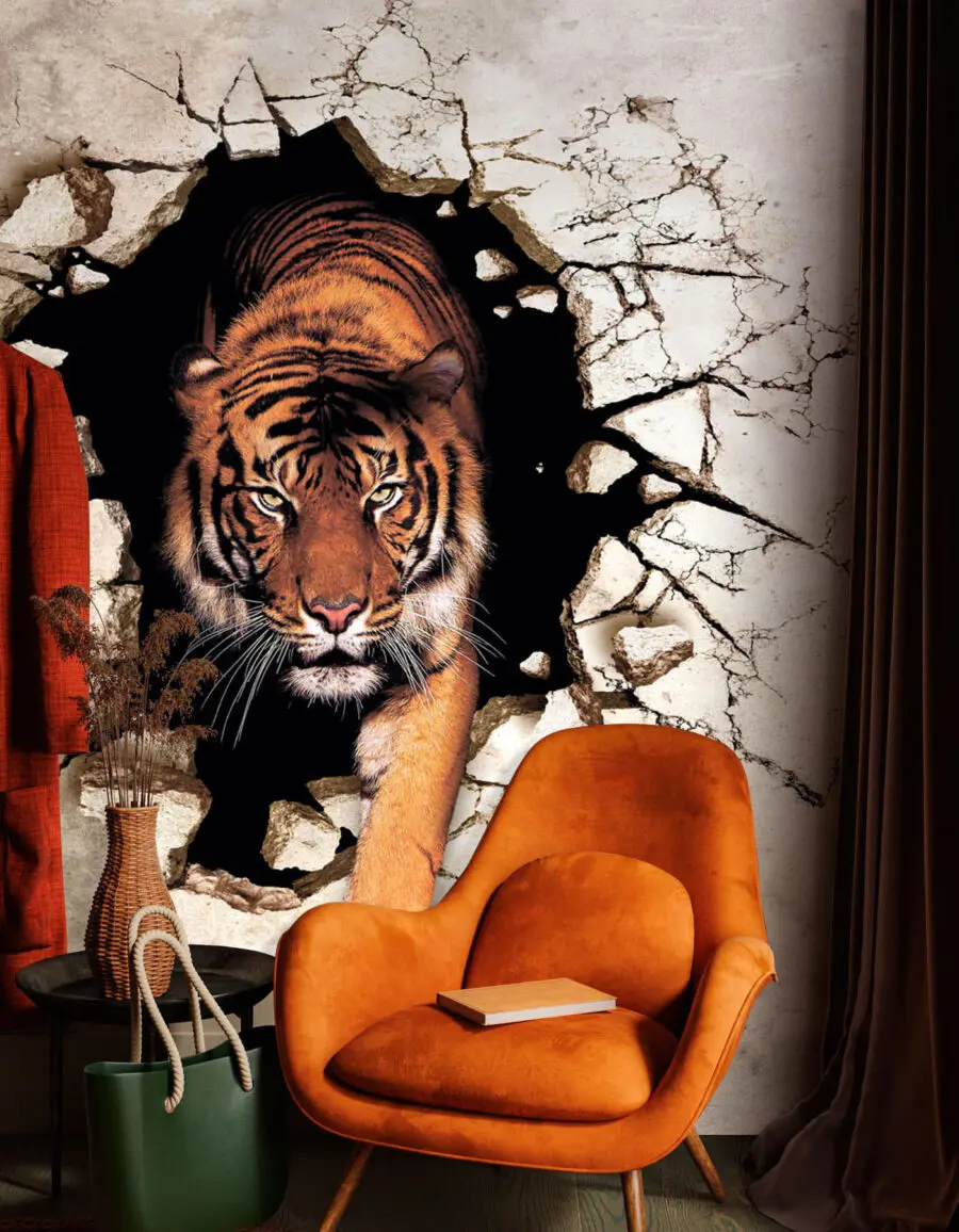 Fototapet Tigrul care iese dintr-o gaură în perete