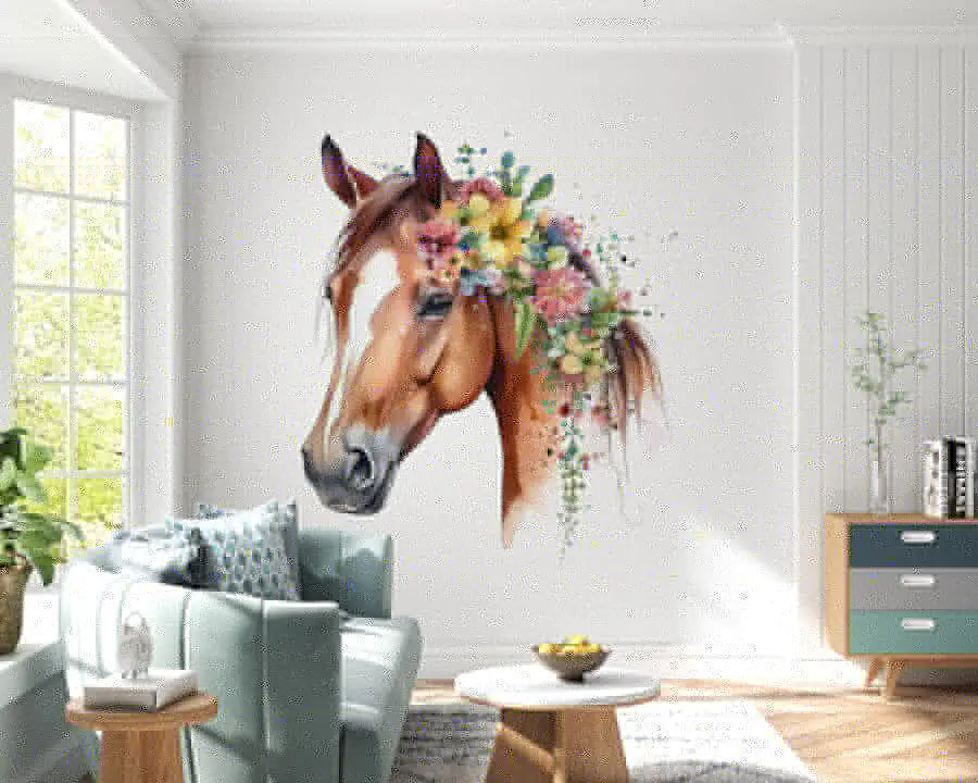 65.98 lei39.59 leiFototapet Acuarelă de un cal cu flori pe cap