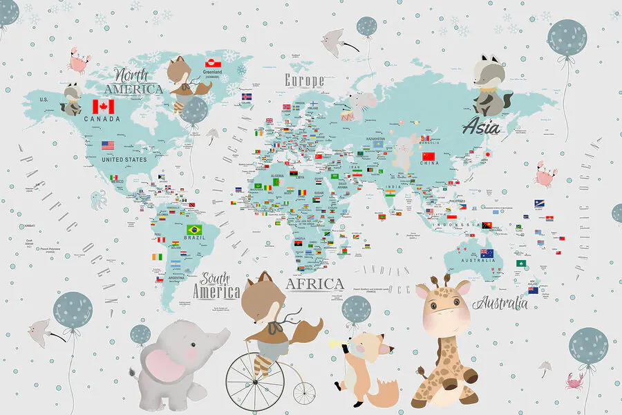 61.64 lei36.99 leiFototapet Hartă a lumii cu animale și păsări