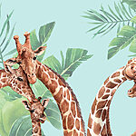 Fototapet Un grup de girafe cu capul în fața frunzelor