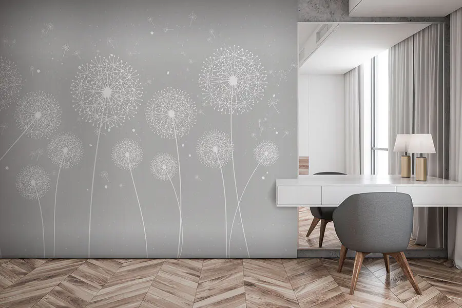 Fototapet O păpădie albă pe un fundal gri