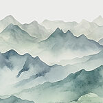Fototapet O acuarelă de munți și ceață