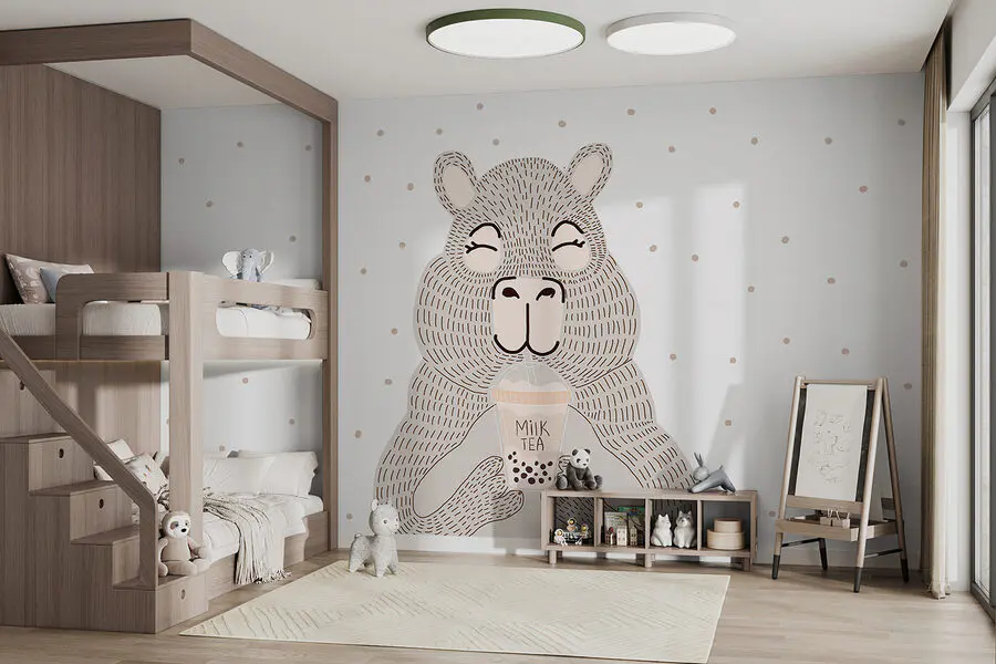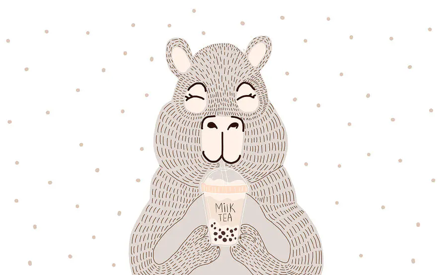 Fototapet Desen animat al unui urs care ține un ceai cu bule