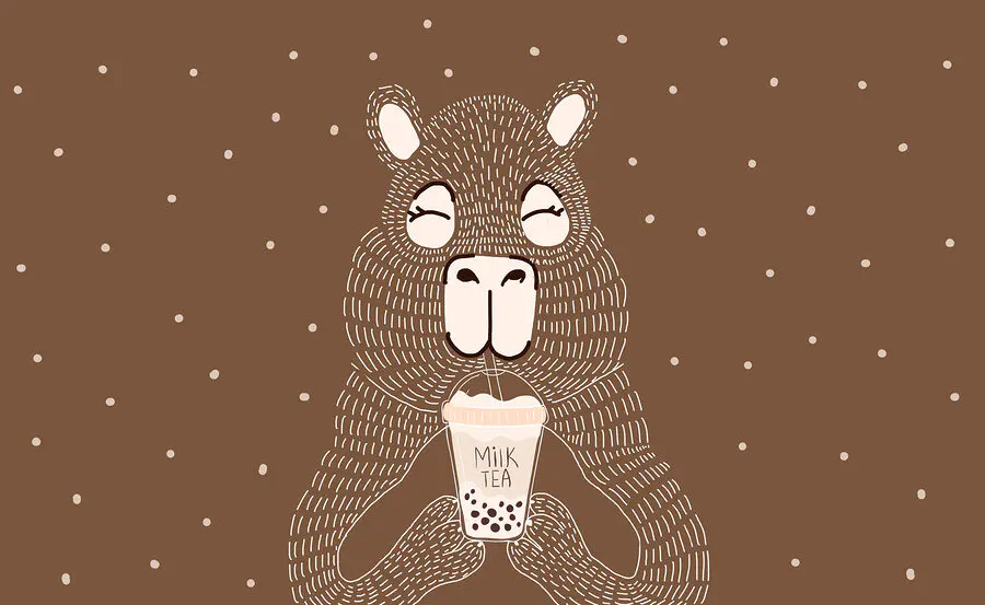 Fototapet Cartoon animal care deține o ceașcă de ceai cu lapte
