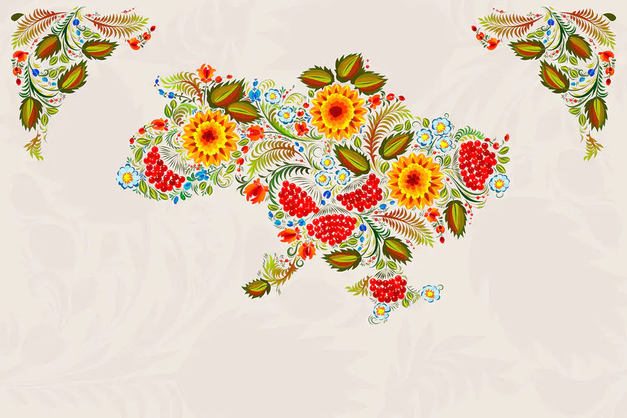 Fototapet Harta Ucrainei cu flori