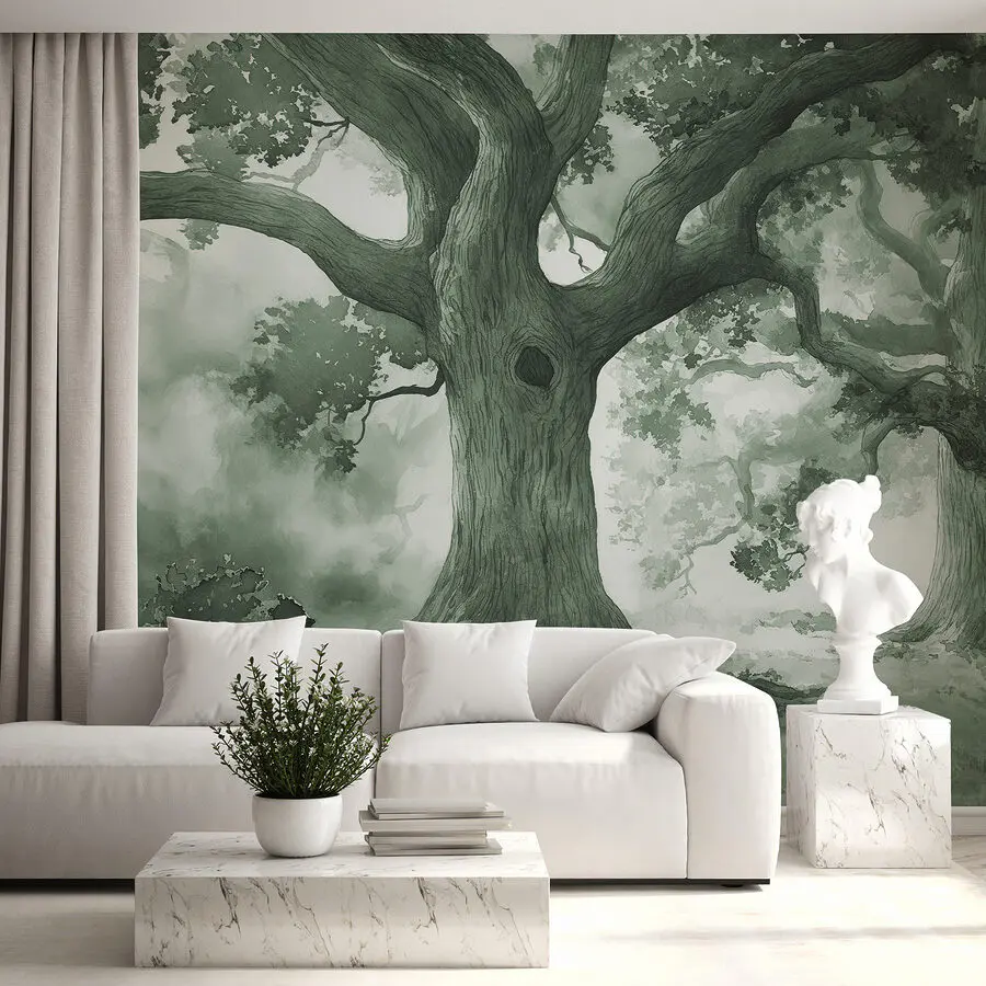 Imaginați-vă că pășiți în sufragerie și sunteți transportați instantaneu într-o pădure cețoasă. Da, aceasta este magia pe care o aduce această pictură murală "Grup de copaci într-o pădure cețoasă". Este ca și cum pereții dvs. șoptesc povești despre păduri fermecate, cu o ceață blândă care se împletește între copacii străvechi. Verdele și griul blând se îmbină minunat, oferindu-vă acele vibrații de pădure confortabilă, contemplativă, chiar acasă. Fundalul perfect pentru diminețile leneșe de duminică, la o ceașcă de cafea, visând la aventurile din pădure sau poate doar adăugând o notă de natură spațiului dvs. modern. Iubitori de natură și visători cu ochii deschiși, aceasta vă strigă pe nume. 🌲✨