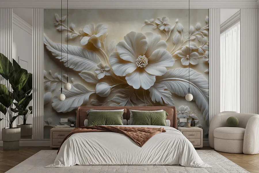 68.38 lei37.61 leiFototapet Sculptura de flori albe pe un perete