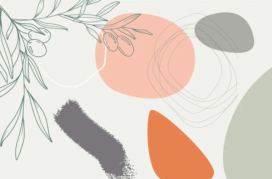 Fototapet Design grafic al unei ramuri cu măsline și cercuri