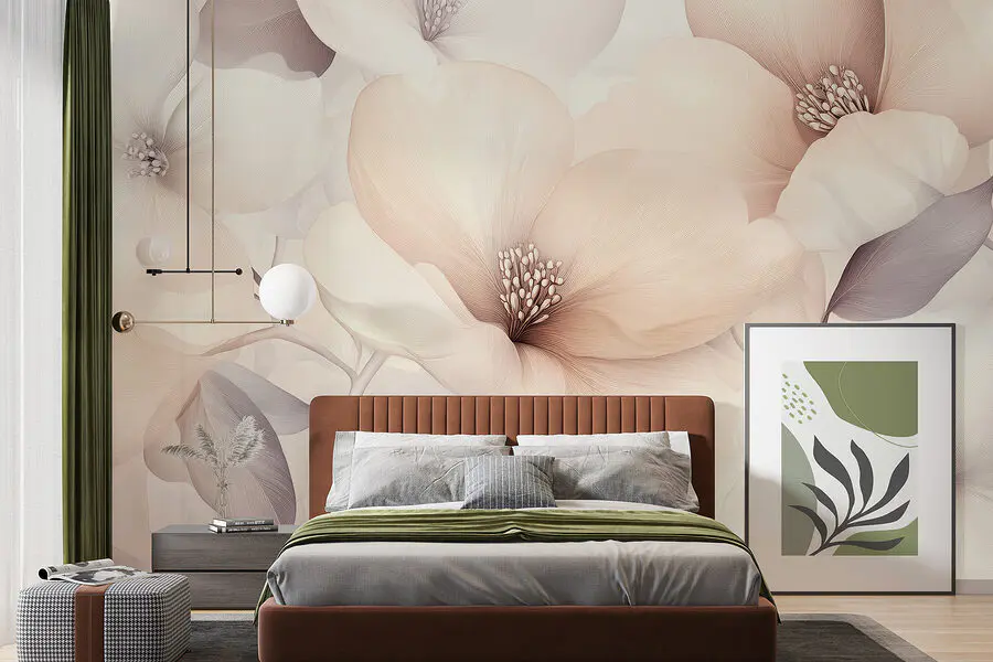 61.67 lei37.00 leiFototapet Perete alb cu flori și frunze