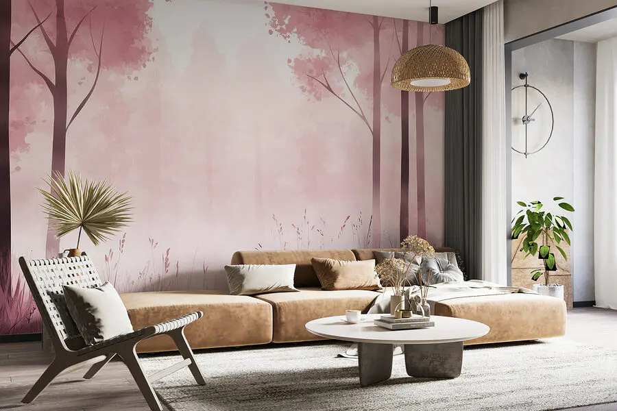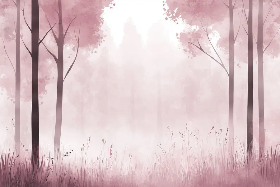 Fototapet Pădure cețoasă cu copaci roz