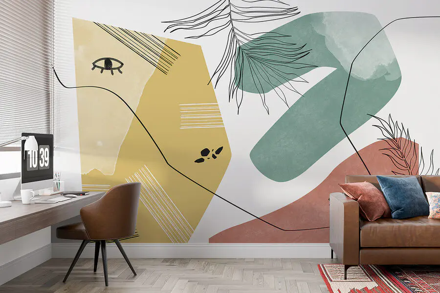 61.67 lei37.00 leiFototapet O artă colorată cu cercuri și frunze albe și negre